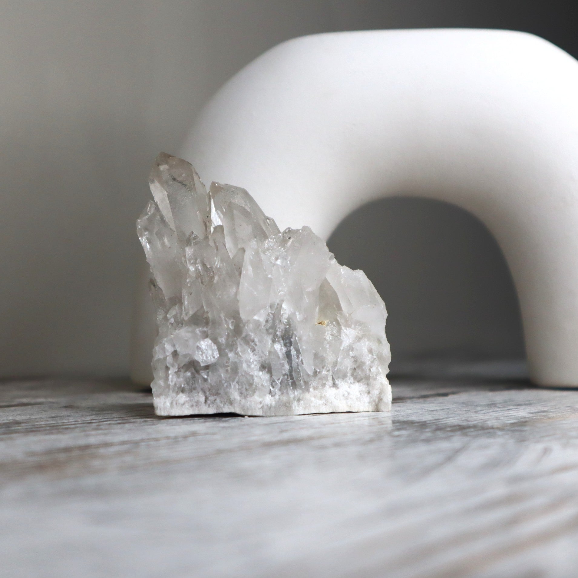 - **Clear Quartz Cluster:** approx. 295g / 8.5cm – high-grade clarity with multiple natural point formations; energising and elegant