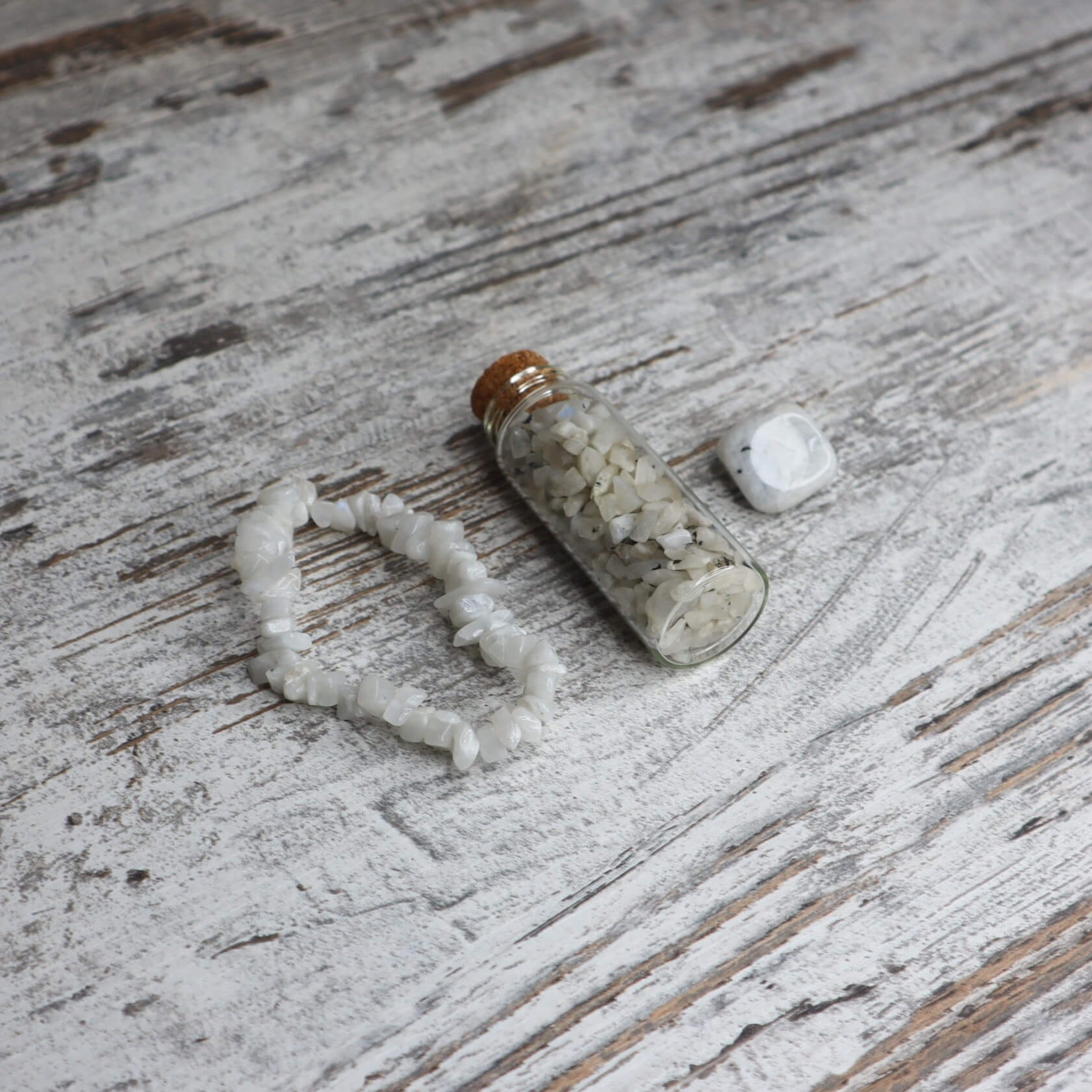 Embrace the uplifting energy of Rainbow Moonstone with our Good Vibes Chip Gift Box, designed to encourage optimism, enhance intuition, and harmonize energy. This set is perfect for meditation, intention rituals, or gifting to someone seeking light, joy, and positive energy in their life.