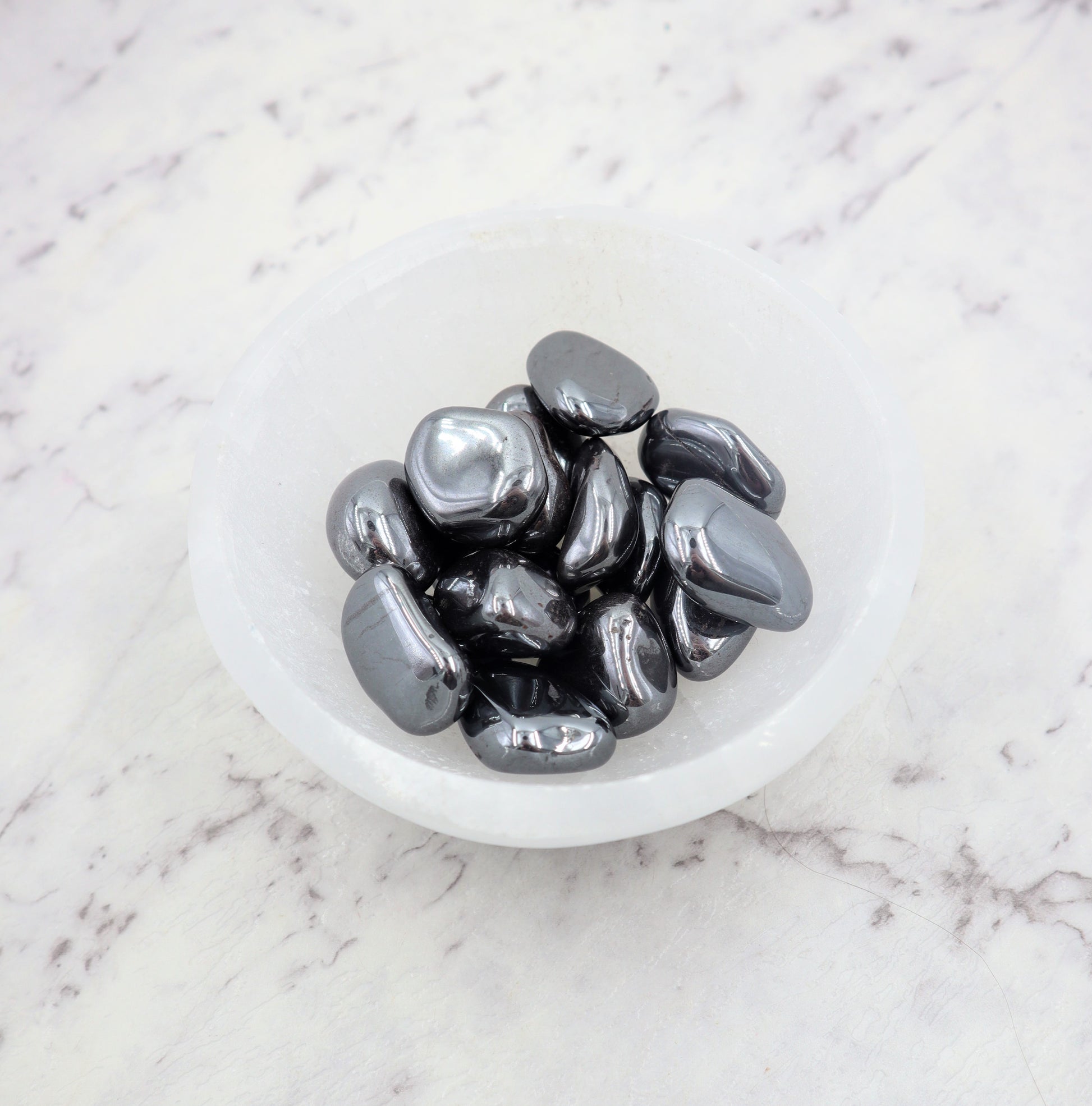 Hematite — A root chakra shield of strength; enhances focus, balances energy, and brings a protective layer to your spirit
