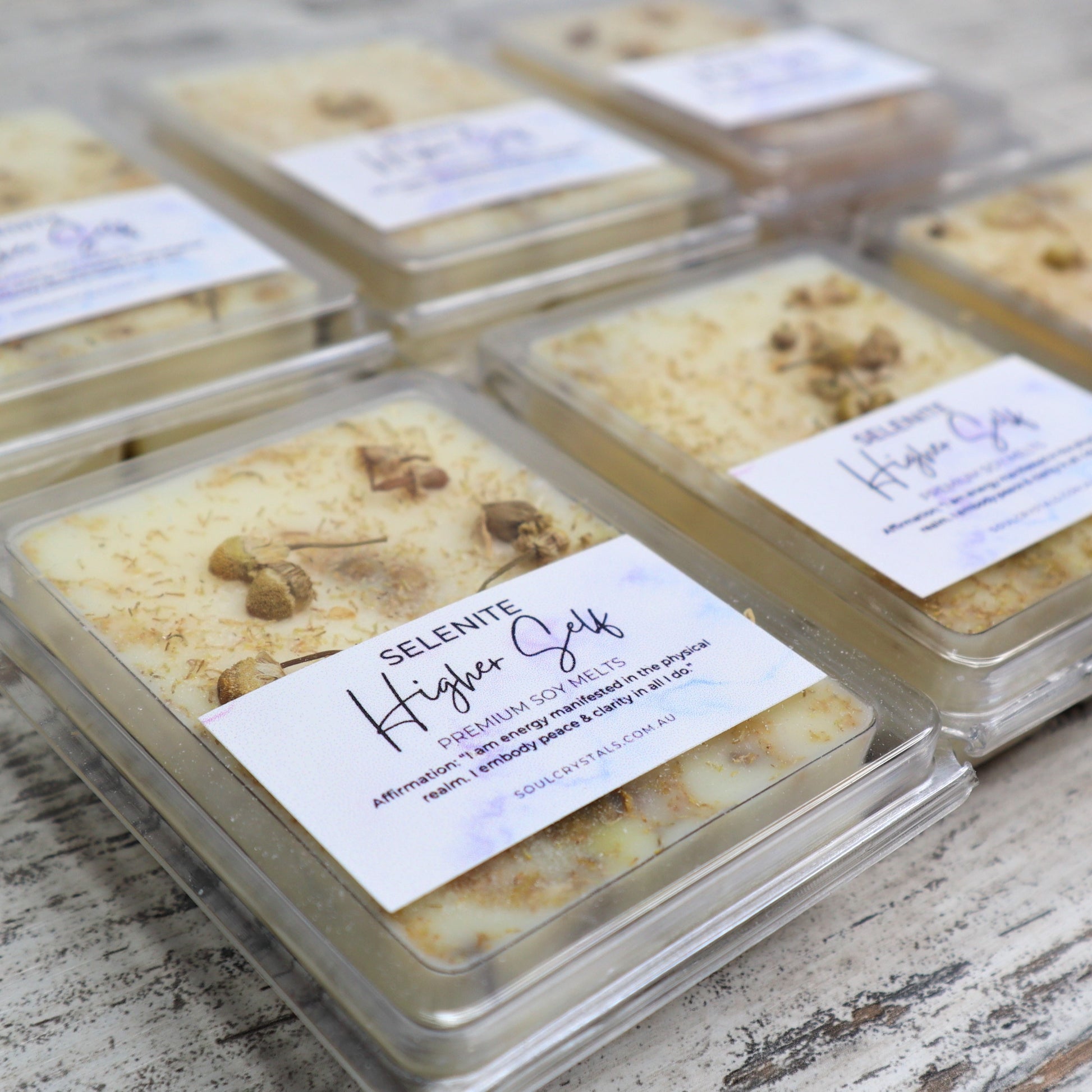 Light, uplifting, and energetically purifying — our ‘Higher Self’ 100% Natural Soy Melts are designed to raise your vibration, clear stagnant energy, and connect you to your inner wisdom 🤍