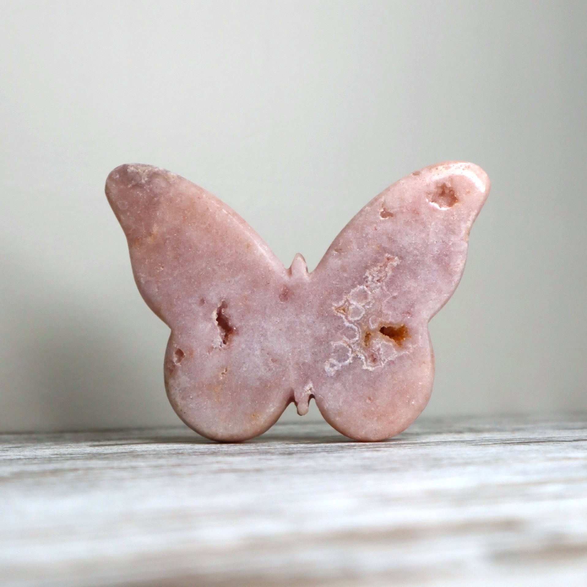 A delicate symbol of change and serenity, this Pink Amethyst Butterfly is a heart-soothing treasure carved from soft blush stone with subtle natural textures. With gentle sparkle and soft druzy windows, it carries the graceful energy of rebirth and emotional renewal. 🩷