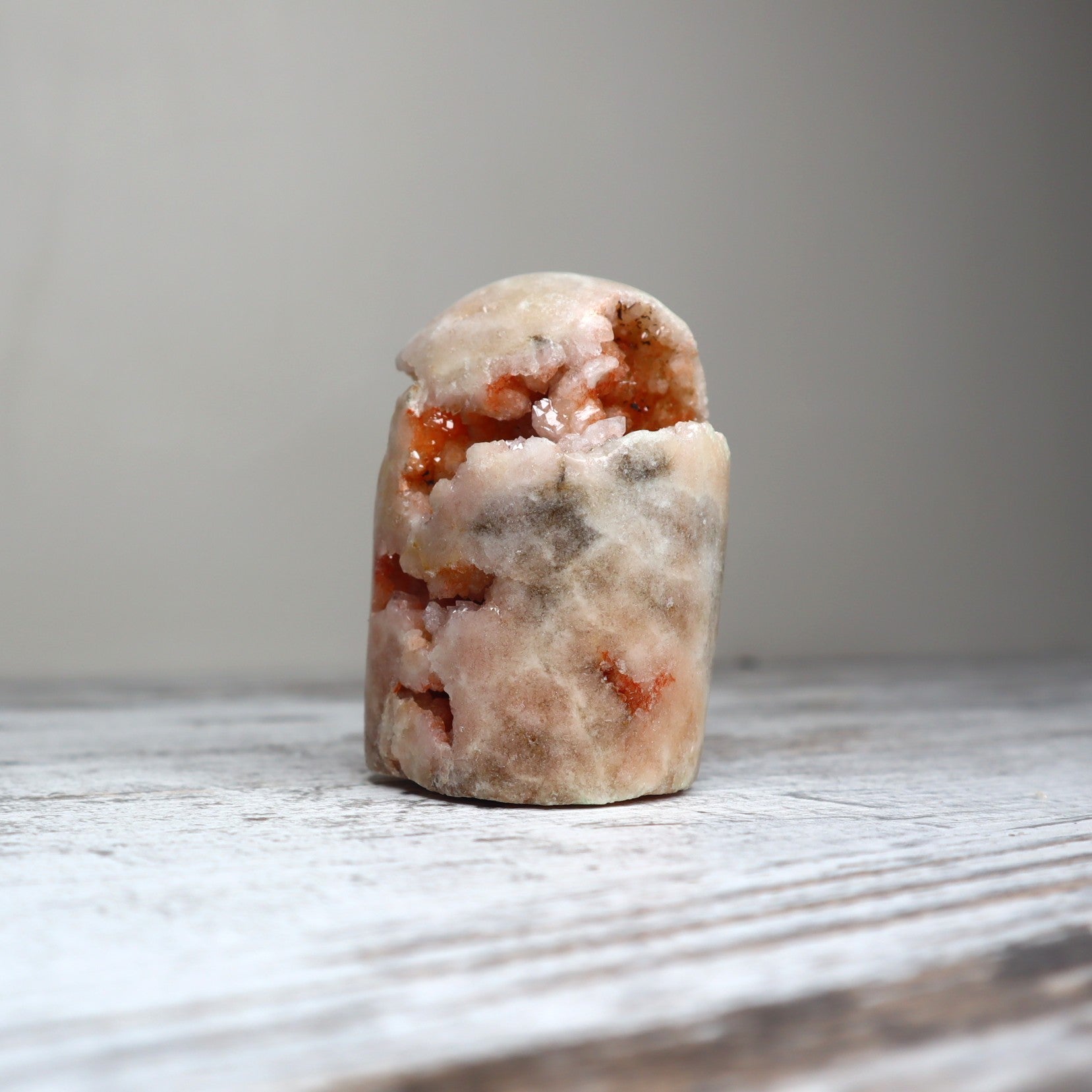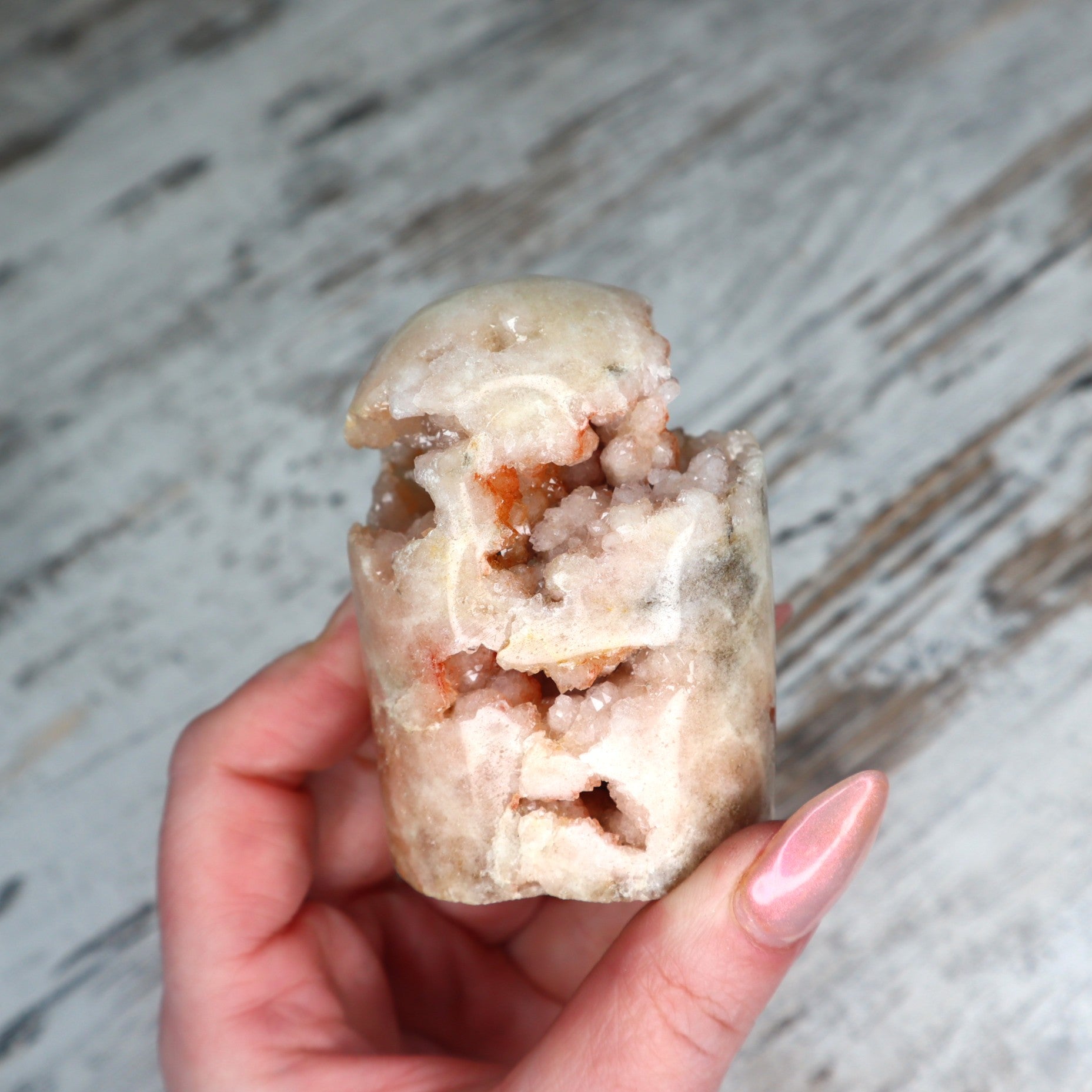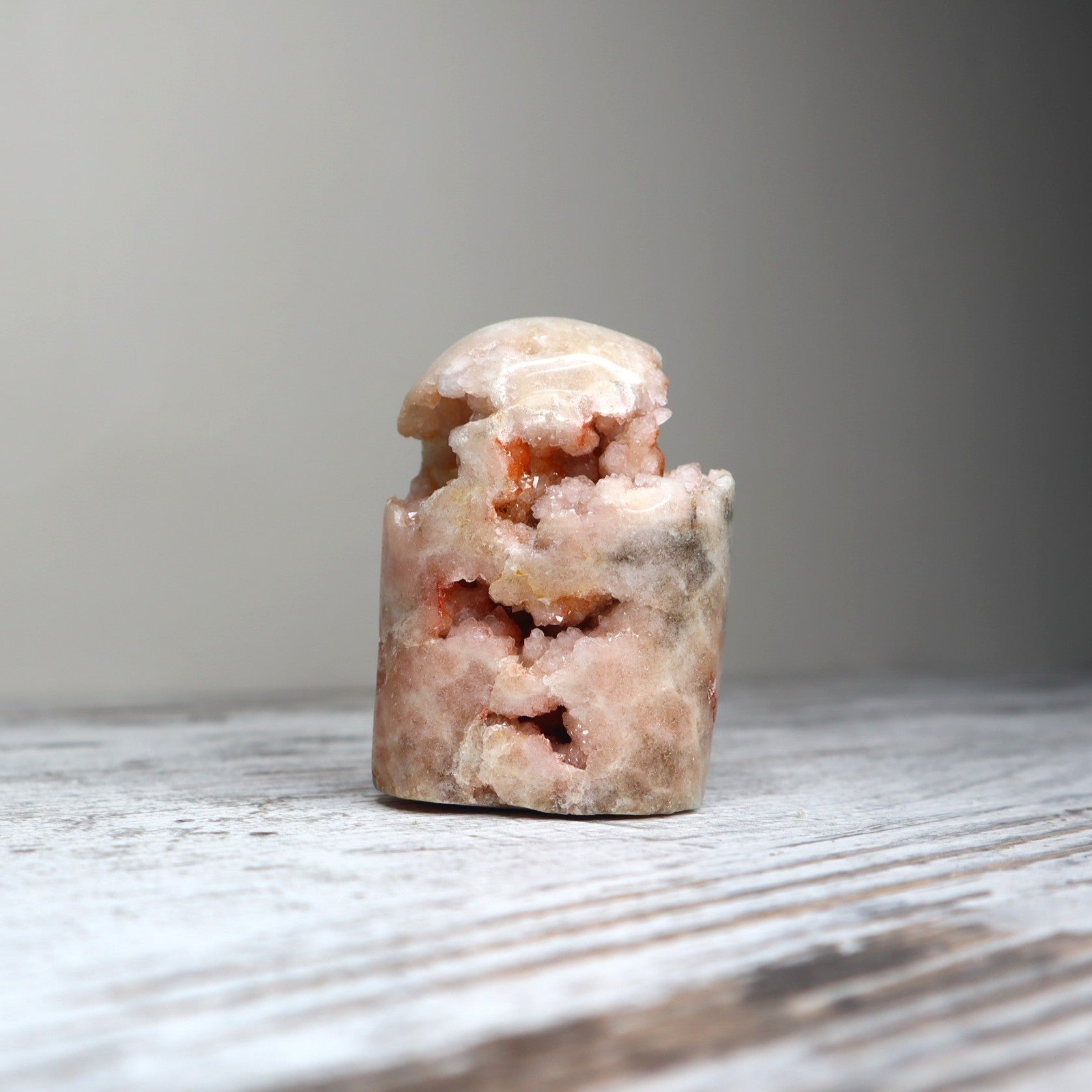 This breathtaking Pink Amethyst Freeform features dreamy blush-pink and peachy hues layered with striking natural caverns and glittering druzy textures. With a soft, grounded energy and a bold sculptural presence, it’s an irresistible piece for inner work and sacred spaces. 🩷