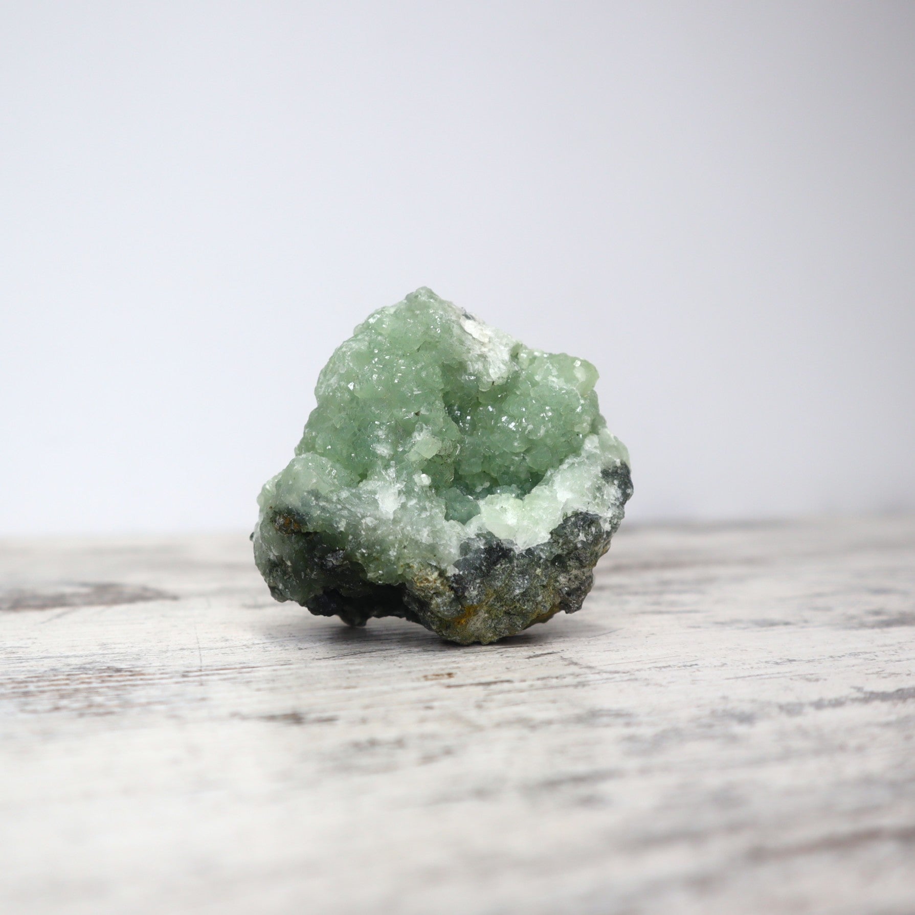 Raw Prehnite cluster – approx. 6cm – featuring light to vibrant green hues with natural shimmer and crystalline sparkle