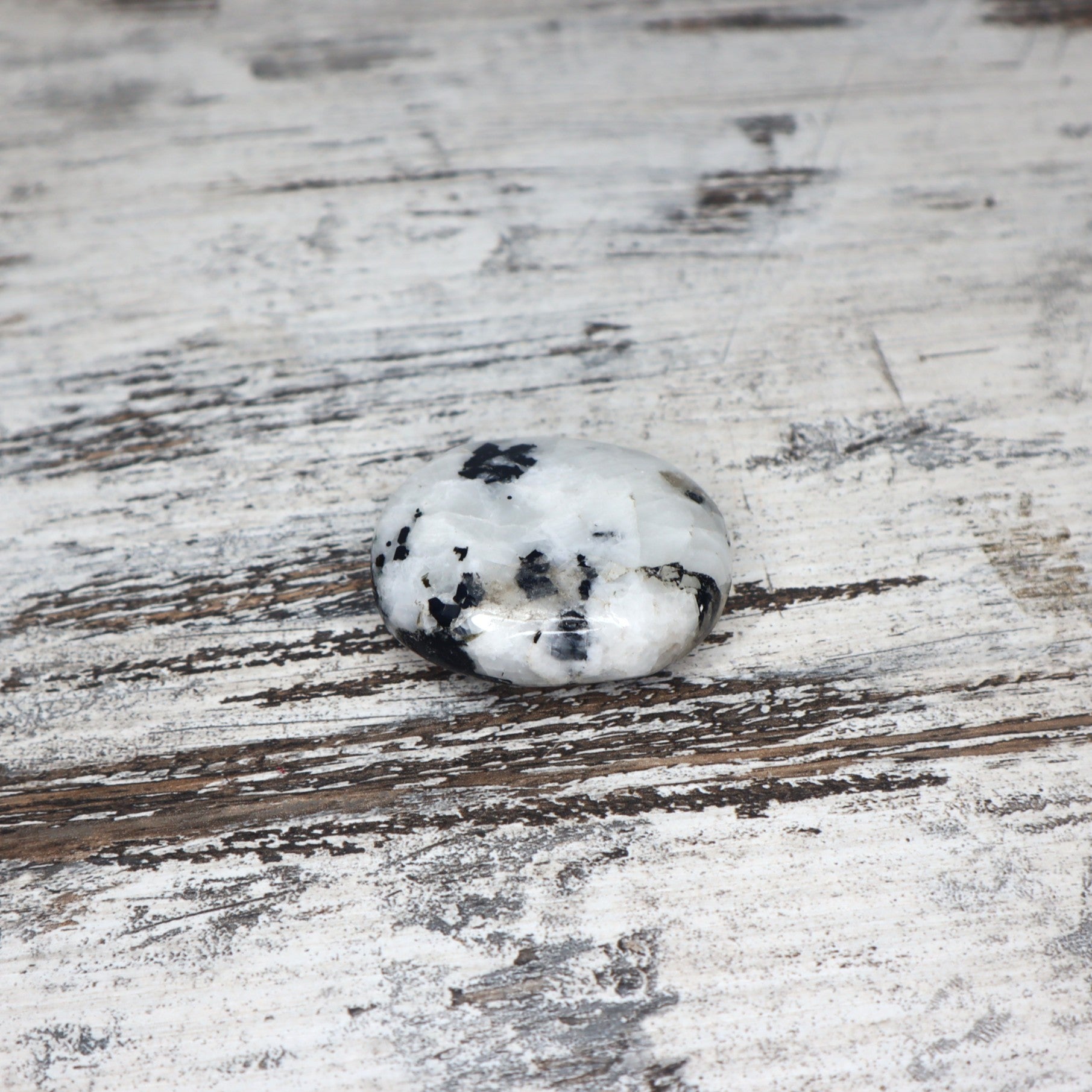 Polished Rainbow Moonstone palm stone – with beautiful flashes – each piece carries its own unique shimmer and soulful glow