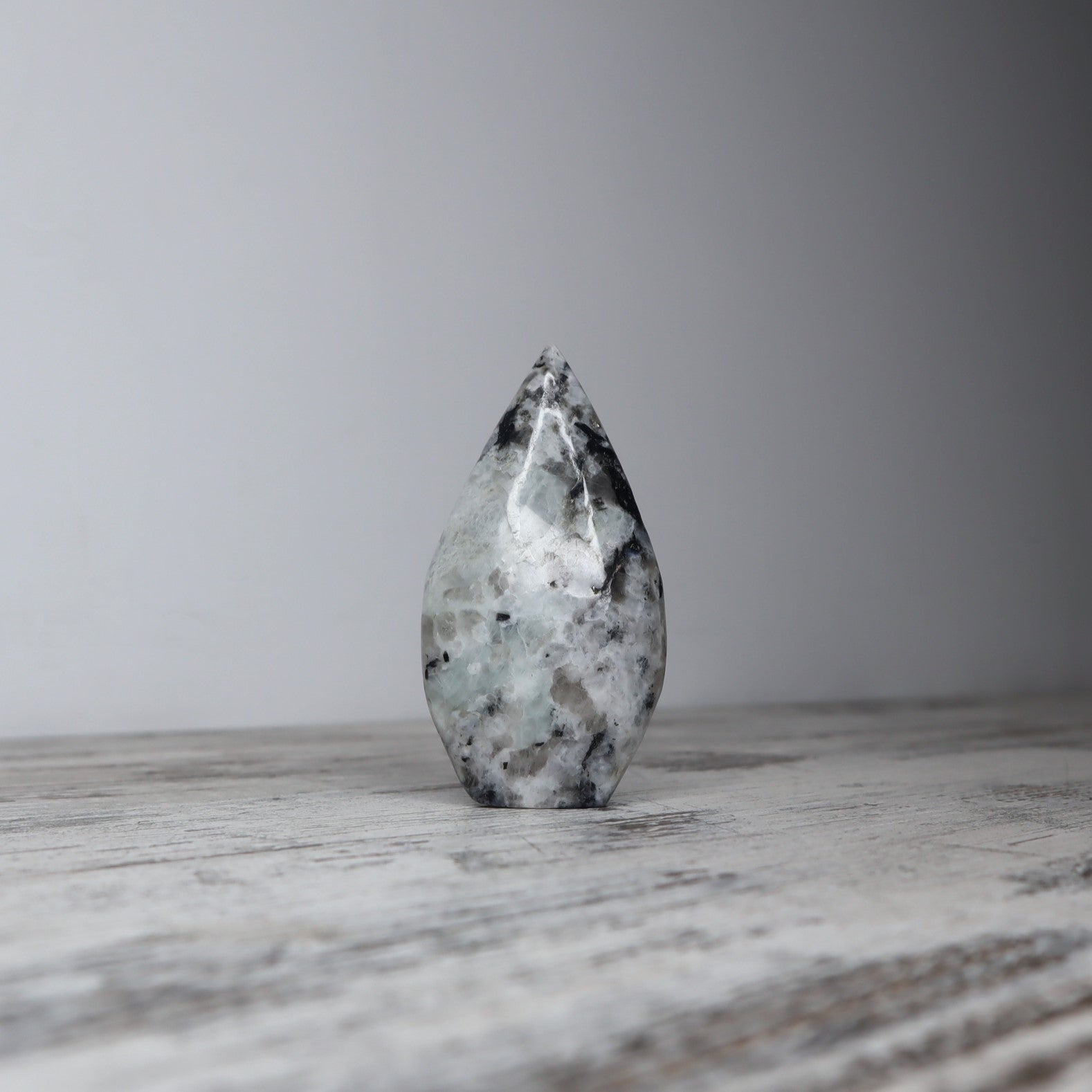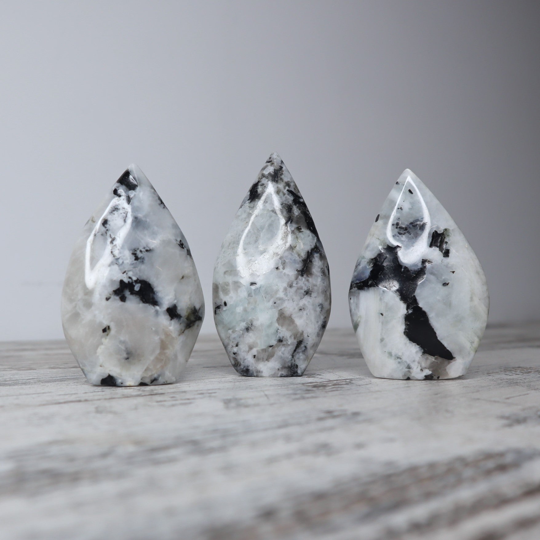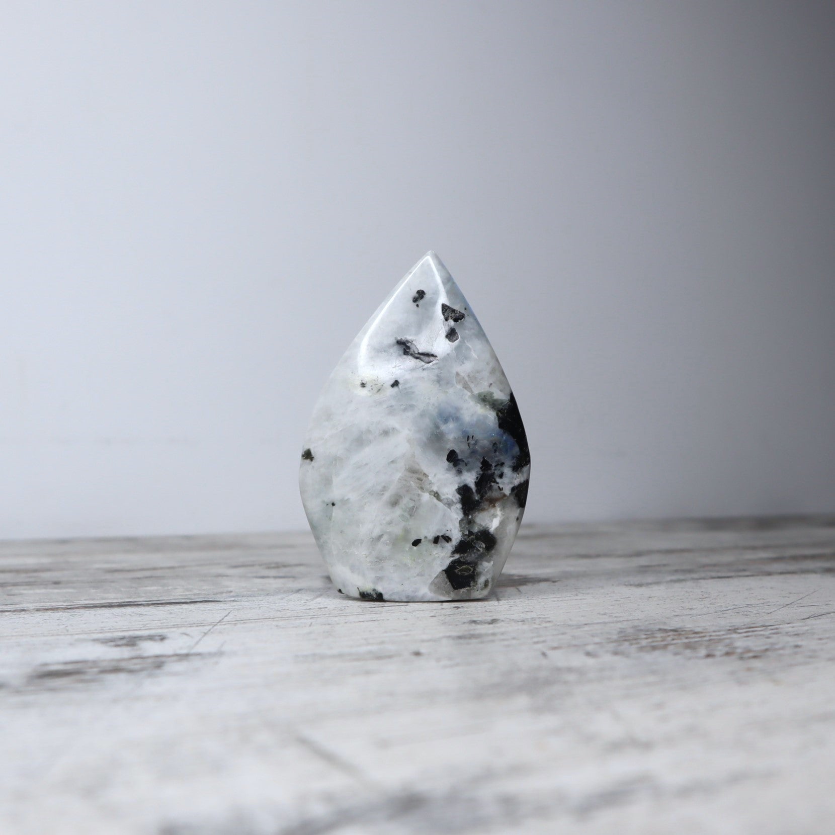 Rainbow Moonstone’s energies activate and align all chakras, allowing energy to flow freely.  It is a very soothing stone with vibrations full of calming and uplifting energy. Rainbow Moonstone is thought to bring balance, harmony and hope while enhancing creativity, compassion, endurance and inner confidence. It is believed to help strengthen intuition and psychic perception, especially offering us visions of things that aren't immediately obvious.